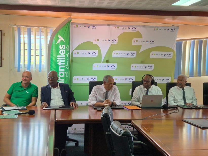 Nicolas d’Hyèvres, Directeur commercial et marketing d’Air Antilles ; Aristide Conner, Président de la ligue de Saint Martin ; Jean Dartron, Président de la ligue de Guadeloupe ; Philippe Maquiaba, président de la ligue Antilles-Guyane de Football ; Guy Cazimir, président de la MMG et Vice-président du Groupe VYV.