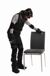 La première est une combinaison de simulation de vieillissement qui permet, en l’espace de moins de 10 minutes, de se glisser dans la peau d’une personne âgée pour ressentir ses difficultés du quotidien, même lors de gestes anodins :