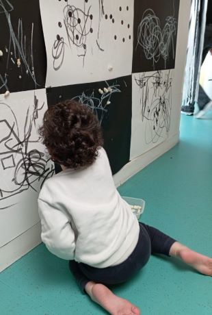 À Mûrs-Érigné (Maine-et-Loire), le multi-accueil Les P’tits Loups, la ludothèque Colin Maillard et les Relais Petite Enfance de la commune ont conjugué leurs efforts pour proposer une série d’ateliers autour du contraste « noir et blanc ». Une palette minimaliste, propice à stimuler l’attention et la curiosité des enfants. L’un des temps forts fut une sortie parents-enfants-professionnels à la Fontaine aux Ânes, un lieu paisible où les tout-petits ont pu librement brosser, câliner ou simplement observer les animaux dans un esprit de respect et de douceur. Une immersion sensorielle en pleine nature, à hauteur d’enfant.